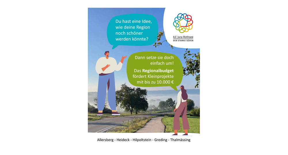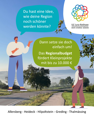 Der ILE-Zusammenschluss Jura-Rothsee ruft unter dem Vorbehalt der Bewilligung durch das ALE und unter Berücksichtigung der nachfolgend genannten Bedingungen zur Einreichung von Förderanfragen für Kleinprojekte im Rahmen des Regionalbudgets auf.