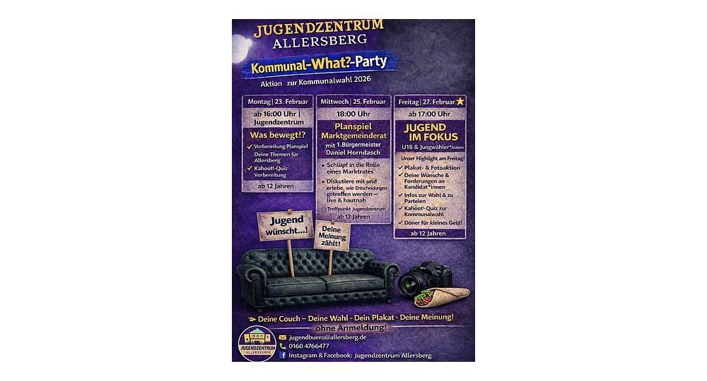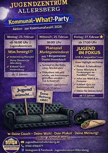 👉 Deshalb findet im Jugendzentrum direkt nach den Faschingsferien, gemeinsam mit Euch eine Aktionswoche zur Kommunalwahl 2026 statt.