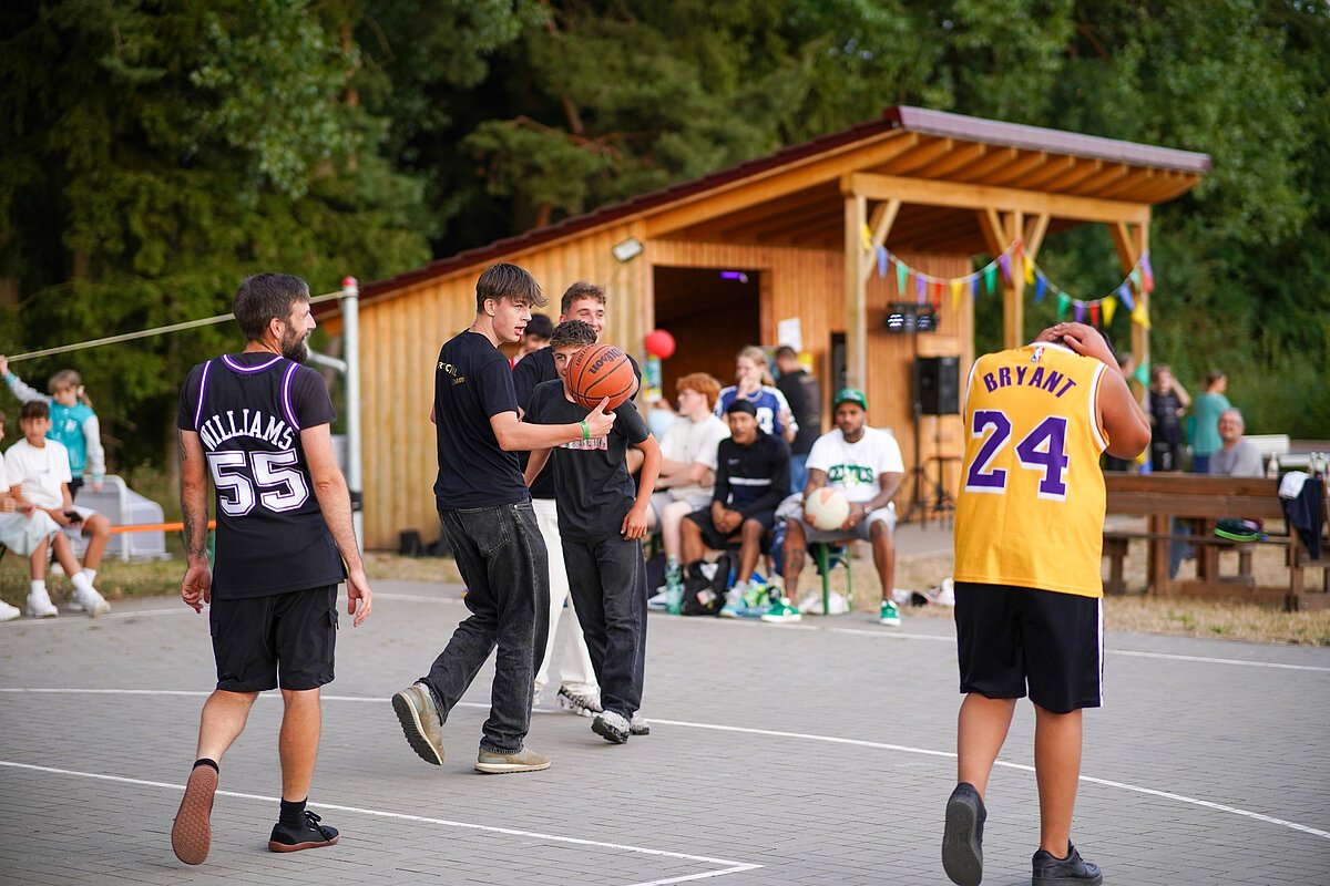 Das Highlight des Abends war ganz klar, die Streetball-Night, die um 19 Uhr begann. Hier traten insgesamt 6 Mannschaften aus dem ganzen Landkreis gegeneinander an. Hart aber Fair und so motivierten sich die einzelnen Spieler*innen auch gegenseitig und feuerten sich an. Bis in die späten Stunden wurde gespielt und unsere Siegerehrung rundete den Abend ab. Das U18-Meister-Team „Big Mac Menü“ konnte sich den ersten Platz sichern und erhielt stylische Basketball-Trikots. Platz zwei belegten „Die Bob’s“, Platz drei „Air Ballerz“. Für die besten Spieler gab es Preise wie Basketbälle, Trinkflaschen und Gutscheine für die Minigolfanlage in Allersberg.